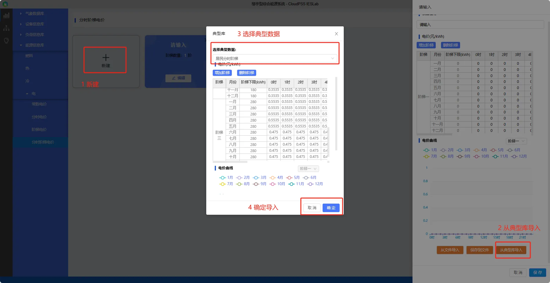 点击“新建”后,点击从典型导入,选择居民分时阶梯并确定导入。