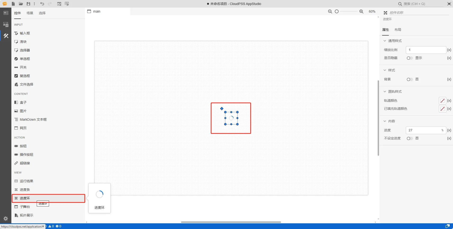 本节主要介绍 AppStudio 控件库里的进度环控件。